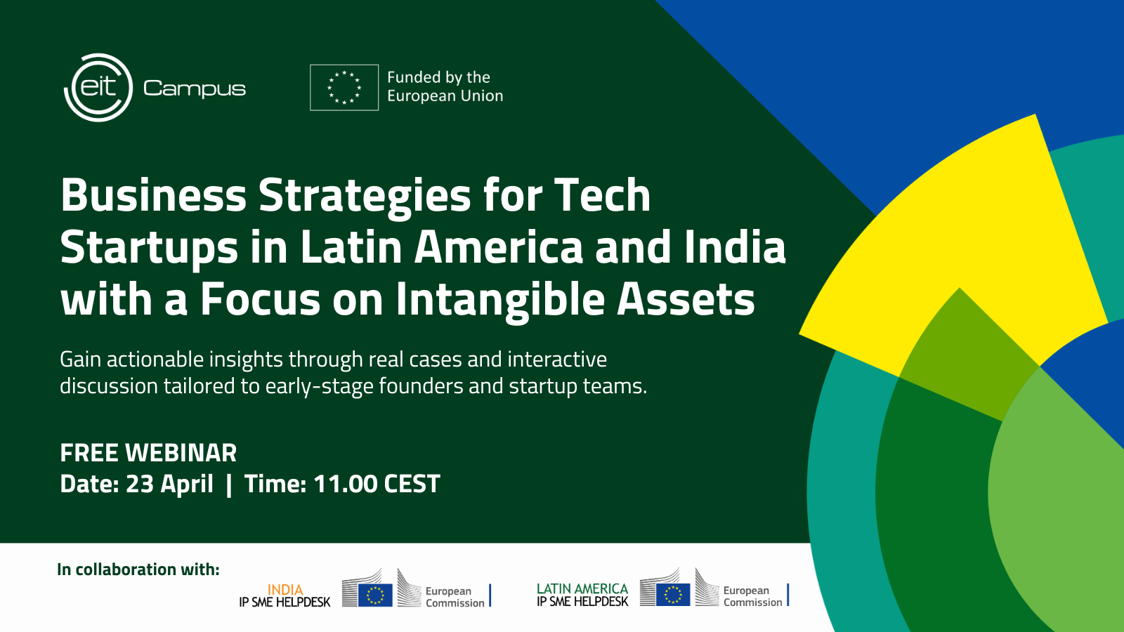 technologies, the EIT Campus is partnering with Eurochambres (India IP SME Helpdesk and Latin America IP SME Helpdesk) to host a practical free webinar focused on how tech startups can approach business strategies and Intellectual Property (IP) when exploring international markets.