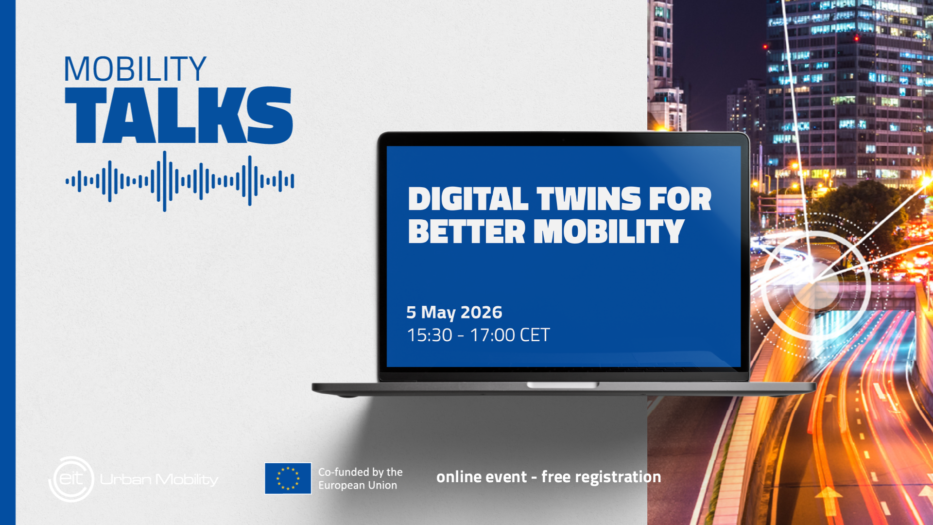 In this edition of EIT Urban Mobility Talks, we will explore how digital twins can deliver real public value for mobility systems, while supporting digital sovereignty, openness, and long-term resilience. The session will dive into how cities and innovators can leverage available data from multiple sources, ensuring that critical digital infrastructures respect and contribute to public policy objectives.