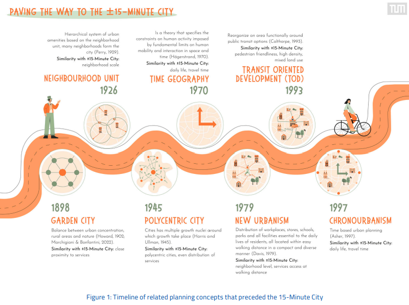 Throughout history, urban designers and architects have theorised about the ideal structure of cities to meet the unique needs of residents. From Ebenezer Howard’s Garden City, which envisioned compact suburban towns with quick access to both services and natural spaces; to Harris and Ullman’s Polycentric City, focused on more organic growth with nodal points around which urban life could be developed – there have been countless planning ideals throughout urban history that have prioritised proximity as a central tenant.