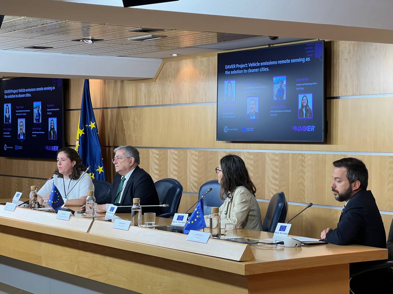 The meeting brought together European institutional representatives, public administrations, technical experts, and social entities to address a paradigm shift: moving from generalist controls to supervision based on real measurements of each vehicle in circulation. In this context, the European project DAVER (Data for Vehicle Emissions and Noise Remote Sensing) was presented; promoted by EIT Urban Mobility an initiative of the European Institute of Innovation and Technology (EIT), a body of the European Union, it aims to accelerate the operational deployment of remote sensing for emissions and noise in Europe. The project presentation featured participation from part of the consortium, including Javier Buhigas from OPUS RSE, Ángel López from the Barcelona City Council, Anna Font from FACTUAL, and Mireia Gilibert, representing EIT Urban Mobility.
